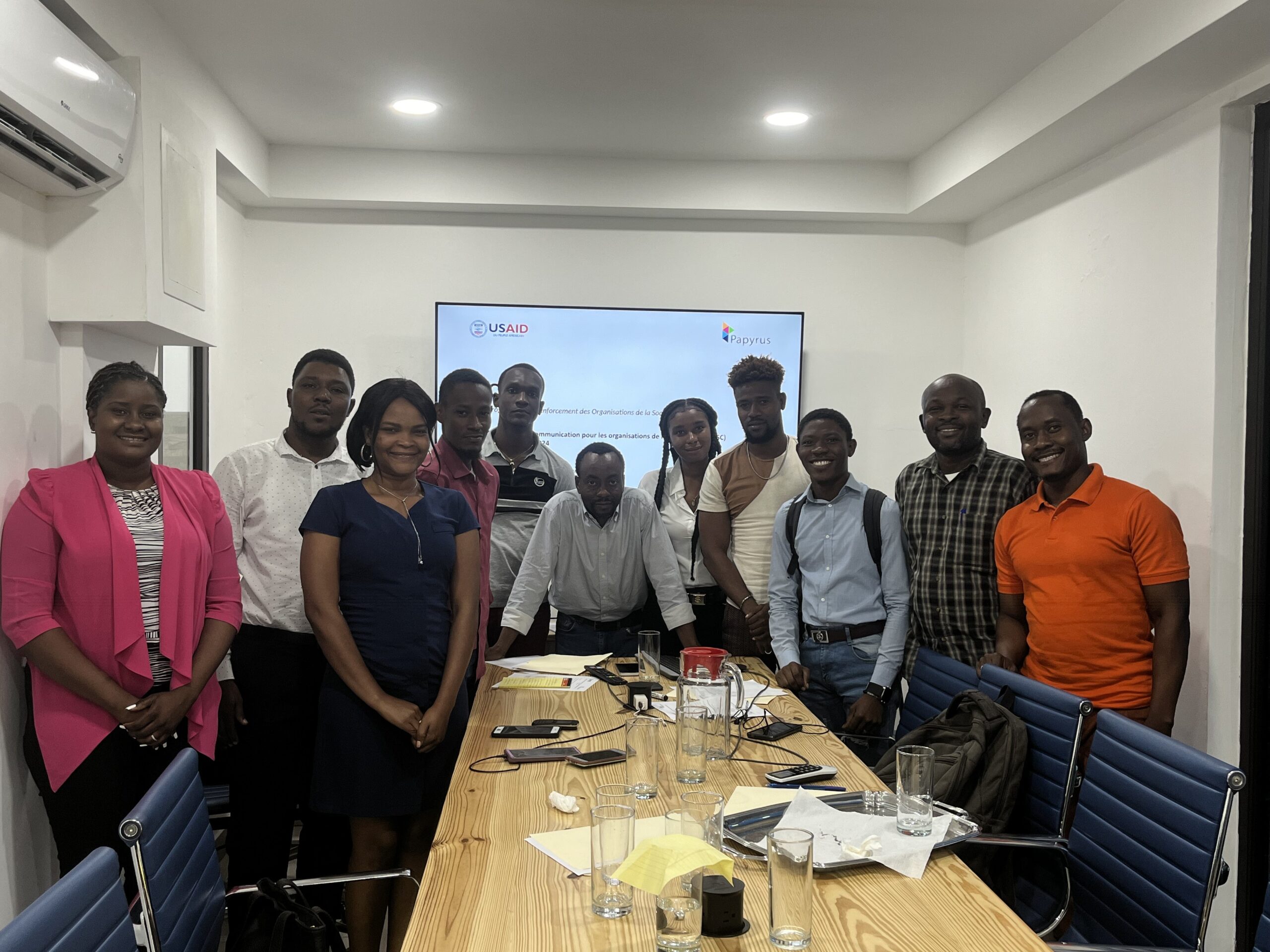 Papyrus and Counterpart leading the communications and outreach training for civil society partners in Haiti.